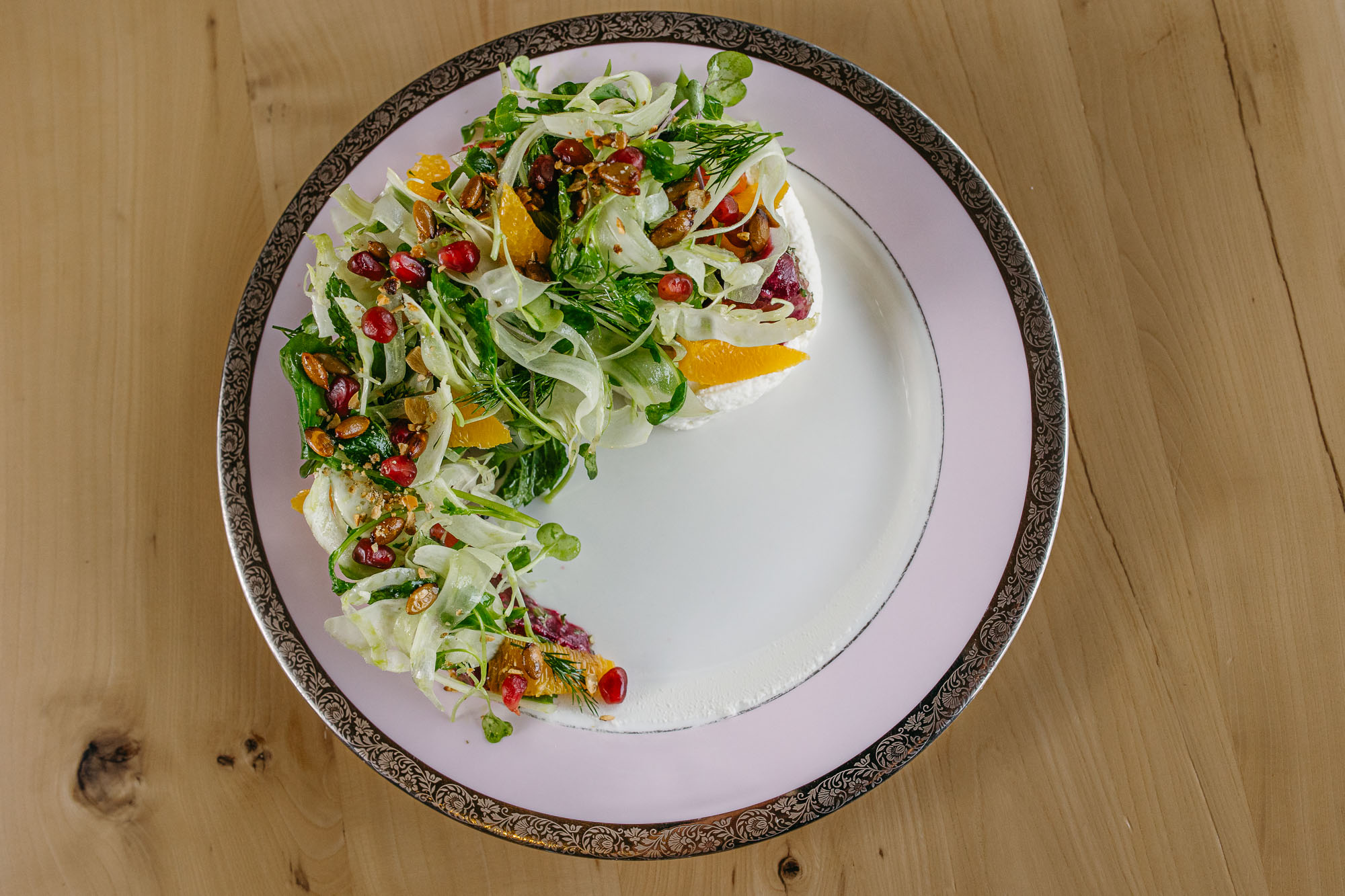 Roasted beets, whipped chèvre, citrus, pomegranate, shaved fennel, candied pepitas, herbs, greens